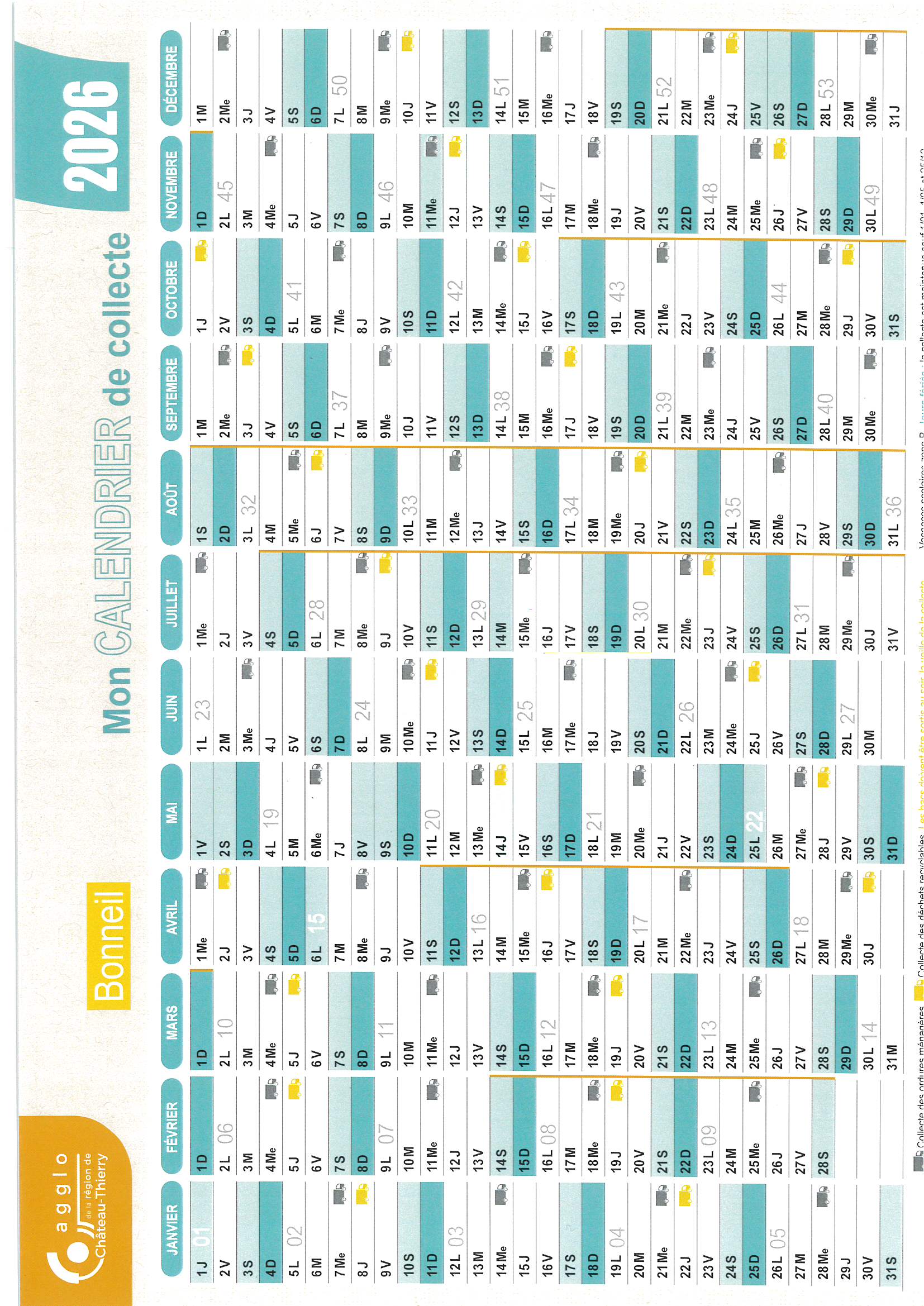 Pour toute demande en mairie, envoyer par mail à : mairiedebonneil@gmail.com (ne plus utiliser le formulaire) Calendrier de collecte 2026 : Bonneil et Bois de Romeny